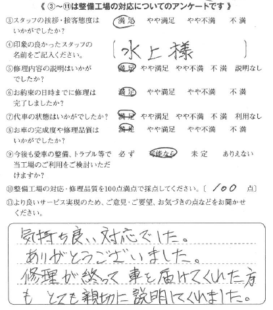 修理が終わって車を届けてくれた方も