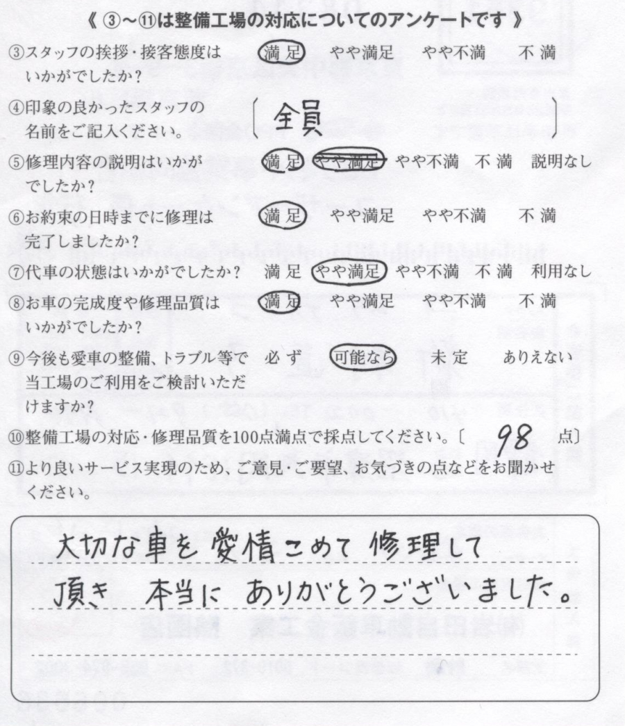 大切な車を愛情kこめて修理して頂き